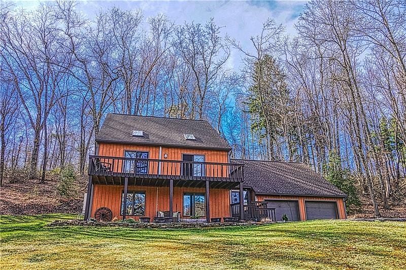 This contemporary style home positioned on its own private oasis offers the desirable location of Penn Twp/South Butler Schools, wooded surroundings & wait until you see inside! This stunning home features bamboo flooring, gas fireplace, vaulted ceilings w/skylights, balcony/deck, fully equipped kitchen w/granite counters, stainless appliances, island/breakfast bar with gas cooktop, main floor master suite with a stunning must see master bathroom w/floor heat, body spray shower, jacuzzi tub & cathedral ceiling! The 2nd floor offers 2 spacious bedrooms with Jack & Jill bathroom! The lower level family room is sure to be a favorite with built in display/book shelving, new flooring, full bathroom, bonus room & 2 stall garage! A whole house generator is ready when needed! A large private deck, a fire pit for evening parties, chicken coop w/electric & peaceful wooded surroundings! The perfect location, updates & living space, SB schools make this a perfect choice for that one lucky buyer!