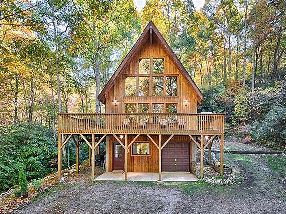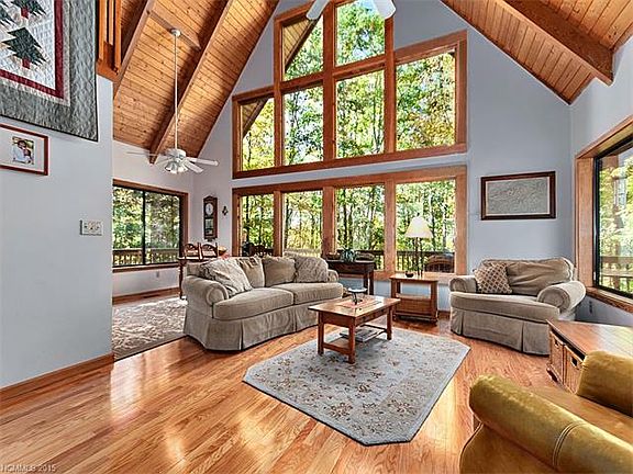 This easily accessible rustic home is just 20 minutes from Waynesville. Tucked in on a gently sloping lot, it's quintessential with a wood burning fireplace, cathedral ceilings and plenty of glass to enjoy the woodsy setting. The cheerful interior is light, bright and open.