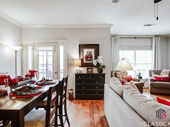 Location, Location! This luxury condo in the heart of Five Points is a must see! Located in the sought after Villas of Five Points off Lumpkin St, this unit has all the living and entertaining space you need for enjoying the UGA activities. Offering one-level living, hardwood floors, new carpet in the bedroom as well as newly upgraded HVAC. The kitchen features custom cabinets, solid surface counters, new refrigerator/freezer and overlooks the large living and dining area for entertaining. The spacious bedroom and primary bath has upgraded closet systems and new paint throughout the condo. These units do not last long and rarely hit the market. Within a few minutes you can walk to Sanford Stadium, Foley Field, and so much more.