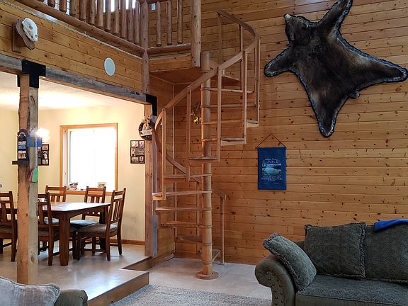 Beautiful 2-bedroom, 2-bath home built in 2002 on Lake Ashtabula. This property is located on the east side of the lake and north of Ashtabula Crossing and is nicely tucked into a bay at the end of the Myer's Landing road. The main floor's open floor plan focuses on a 2-story stone wood-burning fireplace in the living room with an island in the kitchen and spacious dining area. Up the spiral staircase, the upstairs landing overlooks the main floor and out to the lake and leads to the master en suite and a 2nd bedroom. Summers will be enjoyed outdoors on the almost 700 square feet of deck and 75' of shoreline. This property has propane forced air heat, central air, and also includes a 1/2 acre back lot along with a detached 24' x 24' two-stall garage, shed, and 32' dock. Call today to tour