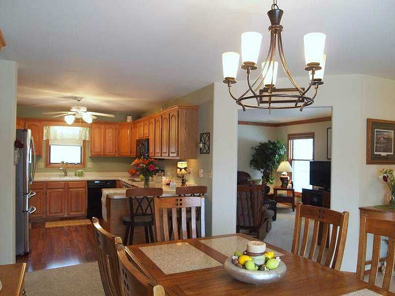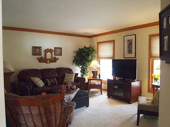 Well maintained, move-in ready! Privacy fence surrounds 3 sides of backyard w/ lush landscaping & deck w/ stairs to grade. Oversized 2 car garage w/ offset of 9 X 3'9" & covered front porch. New kitchen/bath flooring 2012, Roof-2005, siding/gutters/downspouts-2011, sump pump/battery back up-2013, furnace/AC-2013. Updates through-out, crown molding, finished lower level rec area/family room. Master suites includes private bath & walk-in closet.