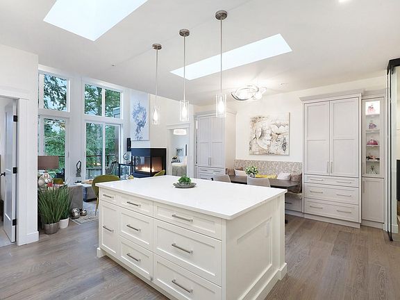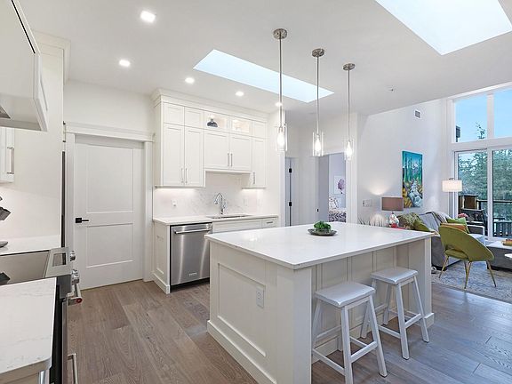 Elegant penthouse suite in exceptional downtown Comox location! This 1,215 sq ft open concept condo includes 2 bedrooms, 1 bathroom, 1 ensuite and a modern office space. Incredible top of the line finishes such as stone countertops, Brizo faucets, custom tile work, Fisher & Paykel and Kitchenaid appliances set this condo in a premium design calibre. Vast windows combined with extra high ceilings and skylights guarantee ample natural light throughout. Glass sliding doors off the living room lead to a private deck with phenomenal treed views across the golf course. Heated floors and a beautiful natural gas fireplace assure an extra level of comfort. Close to grocery shops, shopping, restaurants and more. Allows for 1 parking space, storage locker, 1 pet and limited rentals. 2023-05-19