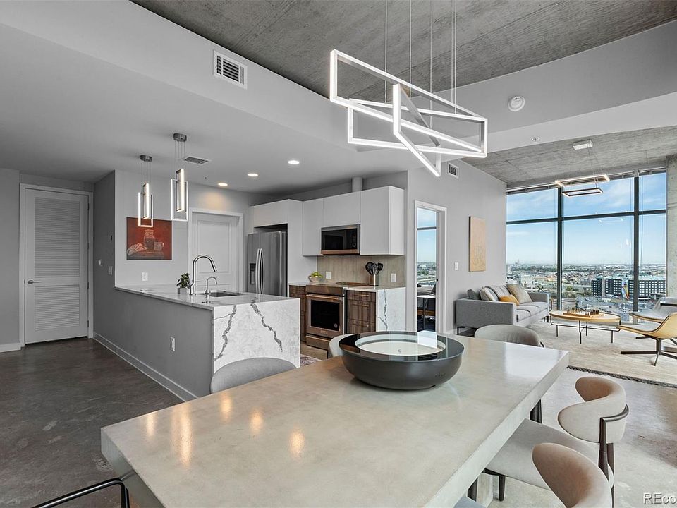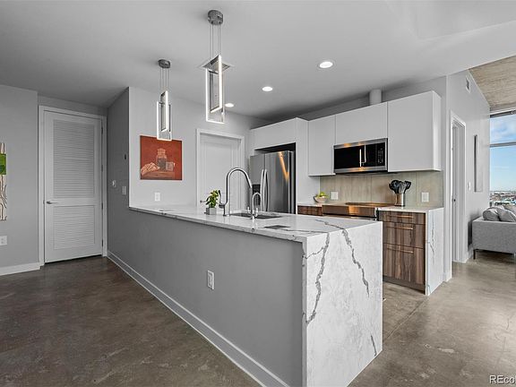 Perched on the 19th floor of one of Denver’s most iconic residences, this fully remodeled northeast corner unit offers stunning city views through expansive 10-foot floor-to-ceiling windows. Flooded with natural light, this thoughtfully redesigned home features over $150,000 in upgrades.  The gourmet kitchen boasts new cabinetry, quartz waterfall countertops, premium stainless steel appliances, and smart pantry/laundry storage solutions. The open-concept layout, soaring ceilings, and new modern light fixtures throughout create a bright and sophisticated urban retreat.  The spacious primary suite includes a spa-inspired bath with a new vanity, Toto toilet, walk-in shower, blackout shades, and a custom walk-in closet. The secondary bedroom, located on the opposite side of the unit for added privacy, features a large walk-in closet and a fully renovated second bathroom.  Additional updates include fresh paint throughout, custom built-in foyer storage, and an expanded entry closet.  Residents enjoy access to top-tier amenities, including a rooftop pool, state-of-the-art fitness center, concierge services, and private security. Located in Riverfront Park, directly across from Commons Park and steps to the Platte River Trail, Union Station, LoHi, Ball Arena, Coors Field, and premier dining and nightlife.  This unit includes one assigned garage parking space.   With 24-hour building and neighborhood security, this turnkey home also presents a strong investment opportunity in one of Denver’s most desirable rental markets.