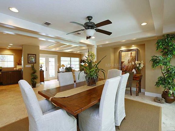 West of Trail ranch home transformed into a darling cottage with luxury finishes. Shell Stone flooring, cove molding with bead board accents, 2008 kitchen, den possible 4th bedroom. Large dining room overlooking pool! Large corner lot perfect for growing family. Short distance to Southside Elementary and Southside Village with gourmet shopping and sidewalk dining. Split bedroom plan with large master suite, and 2 car garage. Furnishings available under separate agreement. Hurry before its gone! Brand new roof Oct. 2013. Owner will consider trade for smaller West of Trail home, vacant land or Siesta Key property.