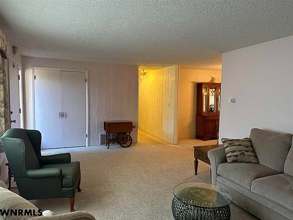 4BR/2BA one level home in Gering Northfield area. Large living room, dining room opens to the patio & nicely landscaped backyard w/UGS. Newer cabinets in kitchen that adjoins the spacious family room with wood burning fireplace. Primary BR/BA with double sinks & walk-in closet. Laundry is conveniently located in kitchen hidden by double doors. Some newer windows and Hi-Eff Furnace. The oversized DBL car garage has lots of storage and zero steps into the family room. Well maintained home ready for a new owner!