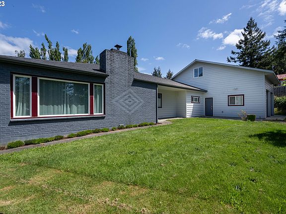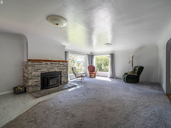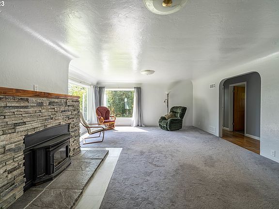 This is a great home in the heart of Myrtle Point with a nice private SETTING. Walking into this home you have a big living room with lots of natural light and a beautiful stone fireplace. Adjacent to the living room to the right is a formal dining room that features original hardwood flooring and built in cabinets. The kitchen is to the left of the dining room. White cabinets, concrete countertops and subway tile backsplash accent the kitchen. The tons of natural light in the kitchen make it light and bright. Beyond the dining room is a 3rd bedroom or office. The laundry room is a mudroom design with a full bathroom with a shower THAT has been updated. Coming from the living room you go down a hallway to get to the primary, second bedroom and full bathroom. This bathroom has a tub and shower and has been updated as well. The primary and second bedrooms are both nice sized. This owner has added a large double car garage WITH AN INTENDED 12'X24' WORKSHOP AND 9' ROLL UP DOORS FOR YOUR OVERSIZED VEHICLES. THE GARAGE WAS BUILT WITH A 400 SF LOFT TO USE YOUR IMAGINATION. The yard is nice with raised beds and fruit trees. This home has a lot to offer. Call for a showing today!!