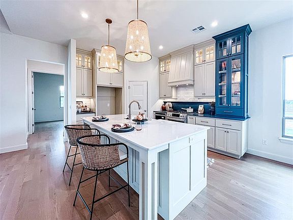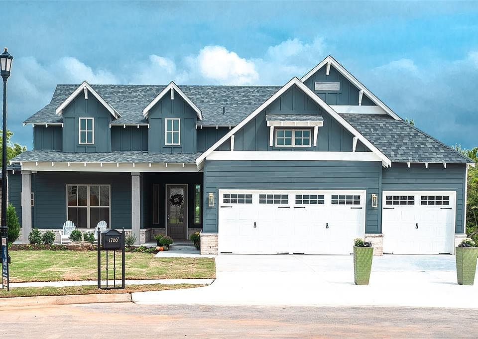 The Steinbeck in our Modern Farmhouse exterior has everything you need nestled with a perfect front porch for relaxing! The large window wall door you see as you walk in brings in all the light to the open great room accented with vaulted ceiling and beams to make it warm and inviting. This home is made for entertaining with its large kitchen island, breakfast room and formal dining! Everyone wants a mud bench and we have one right off the home's 3 car garage. Also included in this home a private study with French double doors next to the show-stopping powder bath. The guest bedrooms have the ever-popular Jack and Jill bath that make this home a winner! Town Square is Edmond's historically inspired community with a greenbelt, walking trails, a fishing pond, community garden, a clubhouse, a resort-style pool, a state-of-the-art fitness center, a youth rec center, and a playground for all the family fun! Model home located at 1616 Boathouse Road is open 7 days a week.