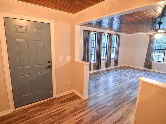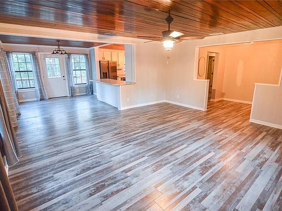 Move-in ready! This wonderful house can be yours before the holidays! Tucked in on an over 3/4+/- acre lot, you'll enjoy the quiet and natural setting of this house. As you walk inside, you'll be impressed with the tongue and groove ceiling that runs through out the house. In the roomy den and dining area, windows all around give lots of pretty, natural lighting. About a year ago, the kitchen was updated to give it a cozy farmhouse appeal. With lots of cabinets, breakfast bar, tile backsplash, center island, double ovens and coffee nook, you'll look forward to cooking and entertaining! While looking at the bedrooms, be sure to notice that 1 bedroom has a cedar lined closet and original wood flooring. The other bedroom and the master bedroom both have brand new carpet and very nice walk-in closets. The French doors in the master bedroom give access to the backyard and a great view of the woods. This house's roof, HVAC, light fixtures, and ceiling fans were replaced under 3 years ago. Need a workshop? This one has power and is perfect for many types of projects or hobbies. The loft area provides lots of extra storage space and the 2 side doors give you drive-in space large enough for lawn equipment, small boat & trailer, ATVs, or other equipment. Special note: The lot to the left of this house is also available for purchase. Please make an appointment today to visit 1700 Crestwood Drive!