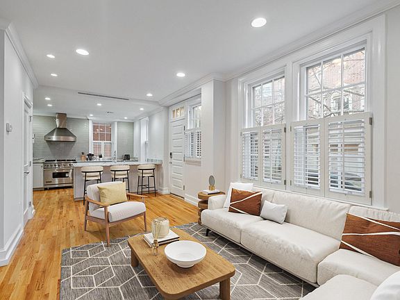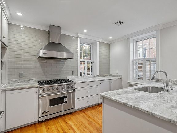 Corner property with private parking in Rittenhouse Square! This 4 bedroom home plus a den is the perfect blend of modern updates and historic charm. The open living space includes red oak hardwood floors and flows into the chef's kitchen complete with stainless steel viking appliances, marble countertops and an oversized dining island. A powder room is conveniently located on this level and tucked away for extra privacy at the top of the basement stairs. On the 2nd level is a large primary bedroom with two closets and en-suite bathroom with Jerusalem gold tile, a dual vanity and walk-in shower. Down the hall is an additional living space with built-in shelves and a gas fireplace that could be used as a 5th bedroom or a den. On the third level are 2 more large bedrooms with a Carrera marble Jack-and-Jill bathroom plus a Juliet balcony. The lower level includes a laundry area along with another bedroom, full bathroom and lots of storage space. Private parking at the rear of the house couldn't be more convenient. Located in the Greenfield School Catchment. Live in the heart of Rittenhouse Square only steps away from Center City favorites including Parc, Rouge, Suprema Coffee, The Kimmel Center and so much more! Tenant pays all utilities, parking is free. No smoking. Pets are subject to landlord approval and may require pet rent. Lease length is negotiable, 12 months or more is preferred.