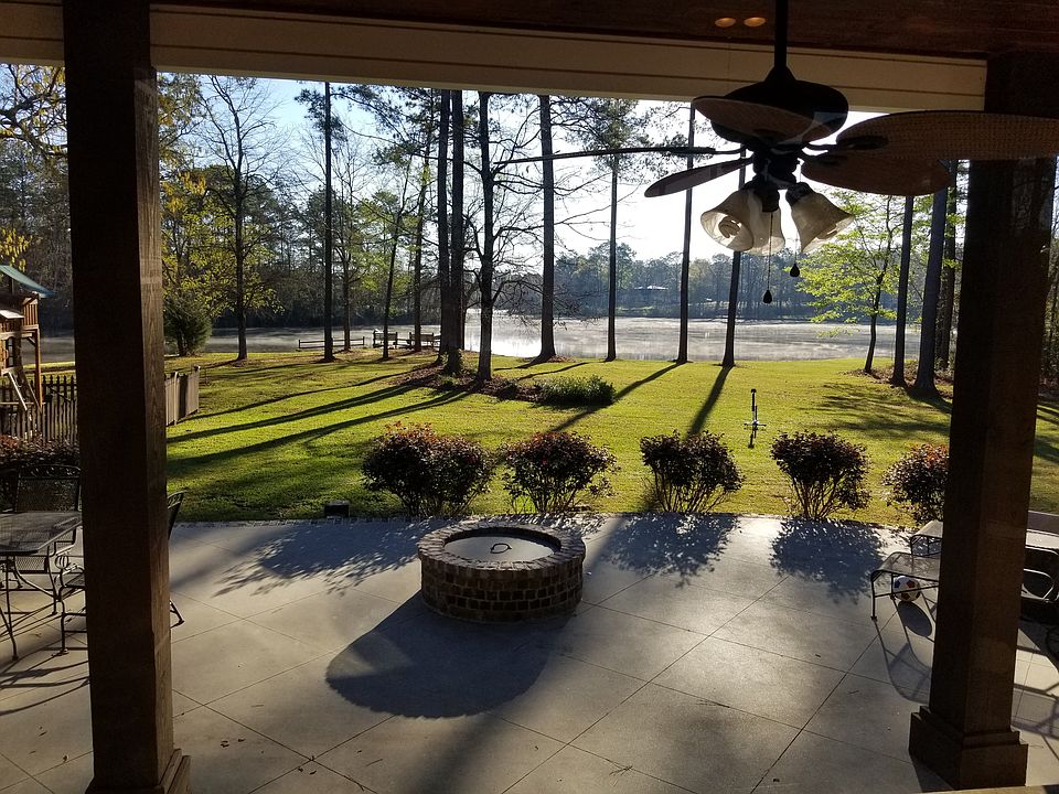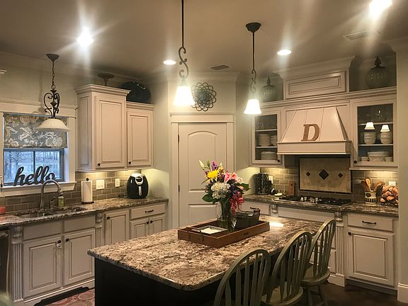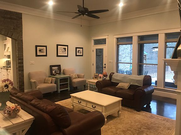 Large 1.1 acre lakefront lot located in quiet cul-de-sac of Bay Minette's best subdivision - Canterbury. Gorgeous views of the lake, large back porch with built-in gas fire pit and a large pier with gas fire-pit to spend evenings on the water. Open floor plan with brick archways in the entry, living and dining areas. 3 bedrooms and 2 1/2 baths downstairs, with large bedroom/bonus room upstairs. Master bedroom has 3 transom windows overlooking the lake. Master Bath has a whirlpool tub, walk-in shower with double heads, large walk-in closet with built-in floor to ceiling shoe storage. Built-in mudroom and office areas, laundry room, pantry and linen closet. Fenced area in backyard for play or gardening. Peaceful lot on the lake with stunning views of the water from the main living areas!