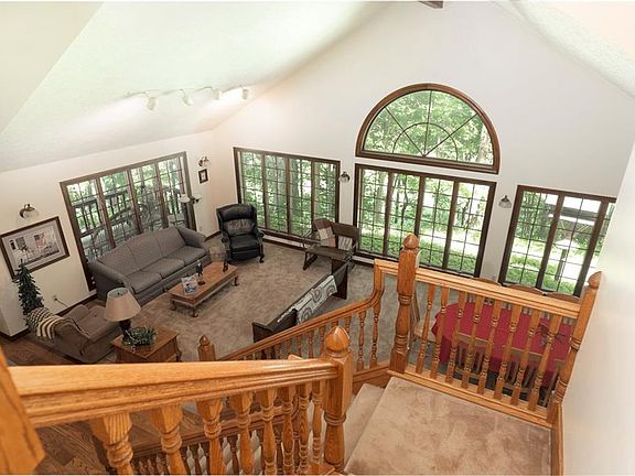 Stunning Custom Built 5-bedroom, 3.5 bath two-story home on 20+ acres. Formal entryway leads to spacious great room with cathedral ceiling, formal dining area, and multiple windows with stunning wooded views. Private office with custom built hickory cabinetry. Kitchen features oak cabinets, Corian counter tops, double oven, walk-in pantry, large center island with breakfast bar and atrium door leading to new wood deck. Large family room open to kitchen. Bedroom with private bath on main level. Laundry room with custom built cabinets. Large mudroom. Upper level features master suite with whirlpool tub, double sink, walk-in closet, 3 add'l bedrooms, Jack&Jill bath, and attic/bonus room. Full walkout basement, 30x40 pole barn with lean-to.