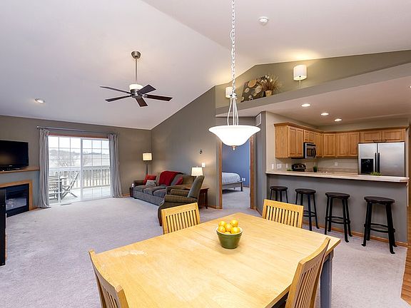 Open & inviting, this attractive 2BR, 2BA Ranch Condo in Villas of Blackhawk Hills is move-in ready! OPEN design w/ soaring ceilings throughout the Great Room & Dining Room. Kitchen features BEAUTIFUL hardwood floors, SS Appls, & pantry. Gas fireplace in Great Room! Glass sliding doors that lead to a LARGE deck w/ country views. Mstr Suite & BA w/ dual vanities & walk-in closet. Main level laundry. Fantastic FULL, basement with egress window, ready for future finish. 2 car attached garage! Convenient location close to Hwy 61 & just 4 miles from Davenport in award winning North Scott Schools! TMI Home Warranty included!