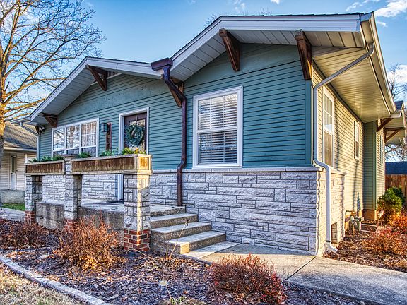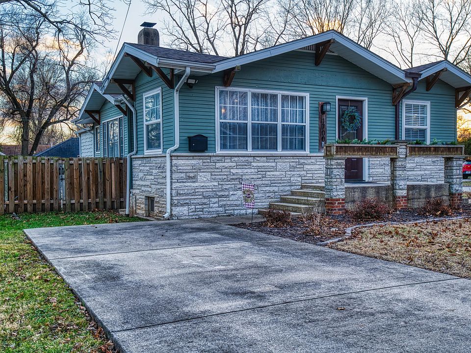 Look at this adorable Rountree area GEM! Lovingly updated 2 bed 2 bath bungalow with modern conveniences along with loads of vintage charm. Living room is anchored by the original fireplace and a beautiful framed entry to the formal dining room. The double doors to the front bedroom were repurposed from elsewhere into the home and a full en suite bath was recently added. The second bedroom has a sliding barn door behind which you'll also find a full bath and walk-in closet. The cheerful kitchen includes granite counters and exposed brick and the fridge, washer and dryer will stay with the house. Off the kitchen is a mudroom area with kitchen pantry storage, laundry closet, and a door to the basement hidden in the floor! The basement offers lots of dry storage space with a dehumidifier and radon remediation system. Wood fencing frames the backyard, from which you can enter the detached garage that was recently restored and offers plenty of parking and workspace. Out back you'll also find a super charming patio area partially enclosed by walls from an original vintage structure, perfect for entertaining under bistro lights. The front driveway extends along the east side of the house and offers lots of extra parking and backyard access. With a convenient location close to shopping, restaurants, breweries, schools and more, this charmer is a dream home in the center of the Queen City!