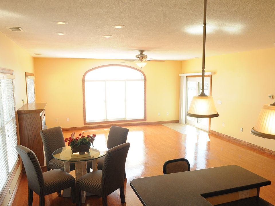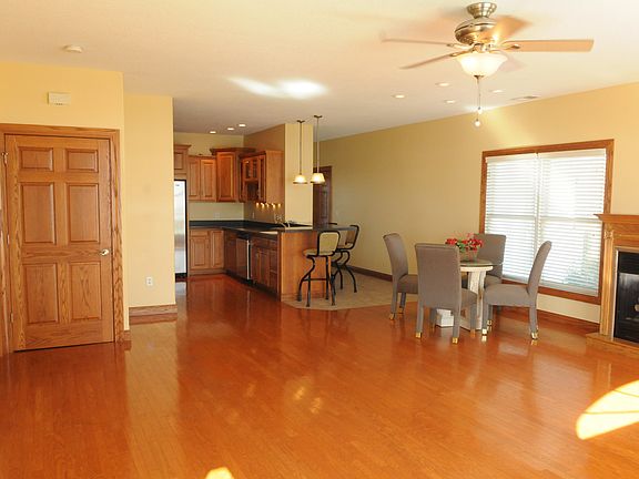 Right on the lake, this first floor condo was custom for the original owner. View from your covered pack porch is from the South. Great sunrises and sunsets await you. Park your water craft right out in front of your home, in the sheltered bay. Hardwood floors, Hickory cabinets, stainless appliances, gas fireplace, Views of the lake from almost every room. This home has its own garage with added storage on floored second floor. Condo fees are $240.00 per month and $40.00 per month for garage. Since your home is on the end of the project, plenty of privacy and extra room to park. Utility room, plenty of closets. Storage closet outside. Complex pool, community park and just 5 minutes from grocery and shopping. Garage 11x29 Worry free Lake Living