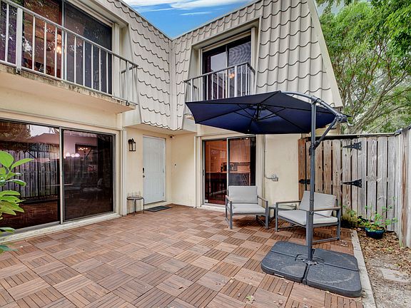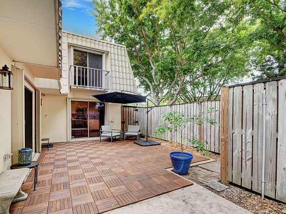 Beautifully remodeled townhome in wonderful location. Upgrades including Porcelain Wood grain tile throughout, updated lighting, white Shaker cabinets in Kitchen, baths, with soft close drawers/doors, granite throughout. Intelligent / HUB fridge w/ screen, stainless appliances, full sized washer/dryer, updated stair rails. 3rd bedroom on 1st floor is a DEN, no closet but large room, you could easily add. 3yr A/C, Roof replaced (2022)AT&T security system, Acacia wood floating deck on patio, electrical piping for hot tub, Cable/water included, dedicated parking, community pool, convenient location, minutes to shopping, dining, and downtown West Palm Beach, Palm Beach and the airport. SELLER WILL PAY CONDO DUES FOR BUYER THRU 2024