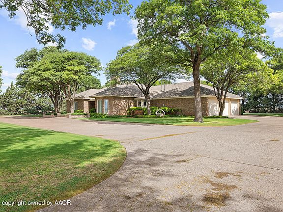 Gorgeous country property in Lamb County. Pride of ownership is apparent in this amazing home on acreage. 3/3/3, with office, basement, & enclosed sun porch. The house itself sits on 1 acre, but up to 2 acres total will convey with the home. 2 domestic wells service the home, and there is a septic system. Permanent generator conveys. The interior is lovely, with pleasing finishes and colors. The kitchen , which is open to the den, has granite counters, stained cabinets, corner sink, island with downdraft electric cooktop, bar, and breakfast nook. Isolated master suite. Newer tile in utility shower. Outside the yard is astounding, with 2 pergolas and patio, healthy windbreak trees, sprinkler system, concrete driveways and sidewalk