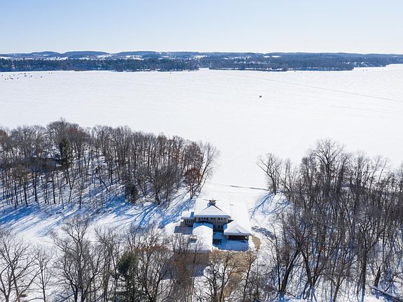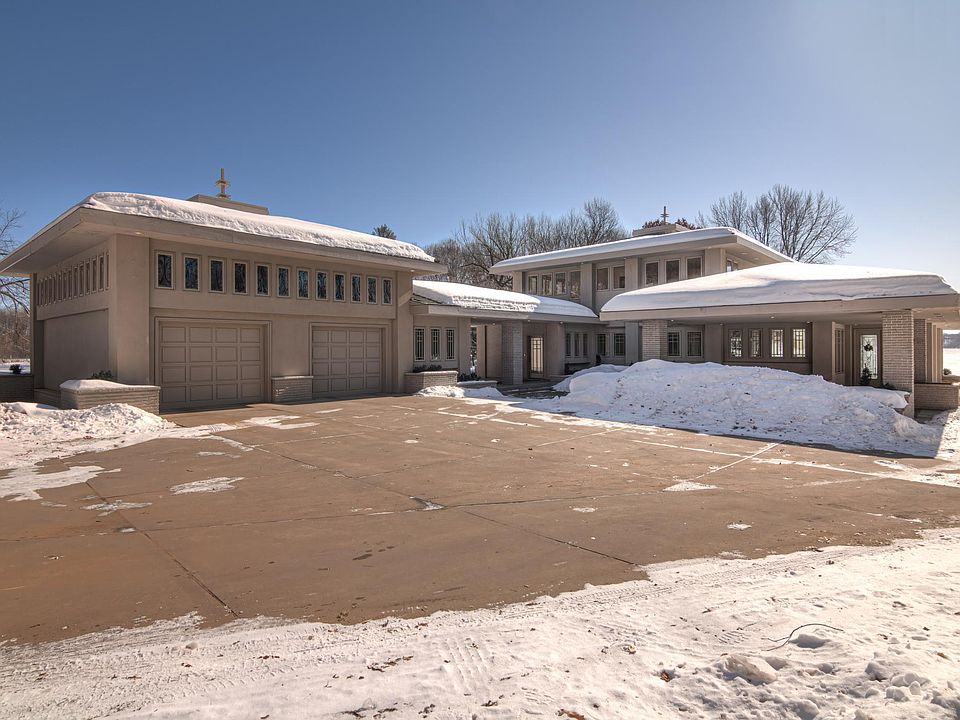 HUGE PRICE REDUCTION! Seller wants to see an offer. Nestled on it's own peninsula, this Frank Lloyd Wright inspired home is masterfully designed. The elegant foyer, library, formal dining & living rm have floor to ceiling windows-breathtaking. Kitchen, dining area, family rm & sunny morning rm are open and airy. Custom cherry cabinets, avonite counter tops, two fireplaces & hand crafted open staircase. Mstr suite is glorious w/a multitude of windows and elegant mstr bath. High end finishes, in-floor heat & air lock entry. Over sized heated garage w/unfinished living quarters upstairs. Exterior is stucco w/hip roof, concrete roof tiles, sprawling verandas for outdoor entertaining & relaxation. Peaceful setting surrounded by water, green space & wildlife. Insured value of home is $950,000. Dramatic price drop of $100,000 due to exterior work needed. Selling "as-is". See att supplement of features. Click on virtual tour.