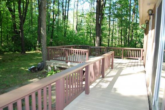 This is a delightful house! Great window let in an abundance of natural light. Over 2 acres of outdoor space with a large wrap around deck for relaxing & entertaining. Cathedral ceilings fill up with warmth and light from the large wood stove that can heat the whole house. Gleaming hardwood floors throughout, a new high efficiency furnace (2014). Only a few minutes from Cornell and just across the road from Monkey Run where you'll find miles & miles of beautiful trail - a hiker's delight!