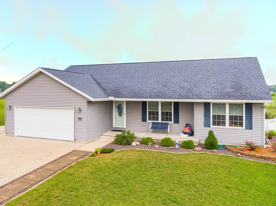 Welcome home to 1700 Hunters Trace - a gorgeous home with extra lot included too! Spacious open floor plan has vaulted ceilings and split bedroom design. Beautiful kitchen w/breakfast bar island, open dining area. Master suite features walk-in shower & 12x5 walk-in closet. Covered front porch & relaxing 15x30 patio just off the kitchen, so nice for entertaining. MF laundry. Full unfinished basement w/2 egress windows & rough-in for 3rd bath. Hunter-Douglas blinds. Energy efficient home w/2x6 exterior walls, added insulation, high efficiency furnace, low e-grade coated windows. Water heater- 8/2019. As if all this wasn't enough.....look at the additional 24x36 detached workshop/garage w/220 plug-in...think of all the things you could do with this! Come see it today! Appliances not warranted. Measurements approximate and not guaranteed.