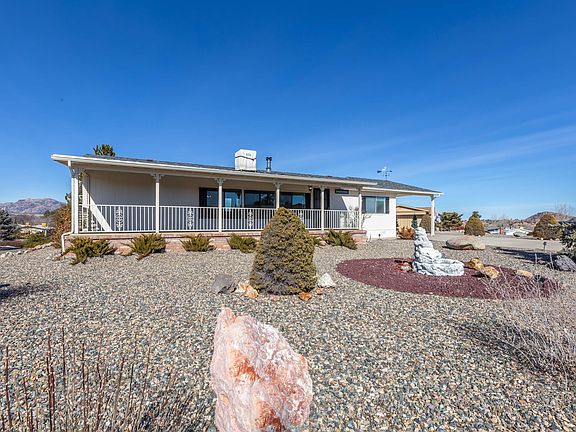Perfect location & great first home, or vacation home to get out of the phoenix heat! Wood burning stove in great room provides warmth throughout entire home. Well cared for with flooring replaced in kitchen, roof replaced, Heater replaced 2 yrs ago, Water heater 3 yrs ago. Shower in Master and tub/shower in guest bath. Large utility room with washer/dryer, nice closet, and built-in desk for computer area or crafts. Peek-a-boo view of boulders and lake from this room. Vaulted ceilings, Oversized windows & extra long deck in front with views of the Bradshaws. Out back from the kitchen & dining windows you can watch the sunset over Granite Mountain. Also has space for your RV on a Concrete slab, and a small workshop/storage shed. New ext. paint 2 years ago. Ready to move in now!