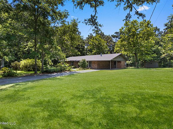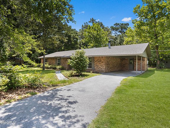 This wonderfully cared for home in Gautier is south of Graveline Road and less than 2 blocks from the Gulf and sits on almost on full acre of prime land. It boasts of a long driveway and lots of trees. The home has newer windows, air conditioning and a one-year-old roof. All the rooms and closets are quite large with 8-foot ceilings throughout. When you walk into your new home, you are greeted by the wide foyer with a large coat closet. And a den-like very comfortable living room with a large brick wood burning fireplace. The kitchen has wonderful wooden cabinets, wrap around countertop with an eat-in breakfast bar, and reach in floor to ceiling pantry. The dining room is quite long and should be able to fit an extended dining table easily up to 10 ft. The primary bedroom has 2 closets, one is a larger walk-in (90 x 52) and the second is slightly smaller (75 x 45). The primary bath is large. Imagine the possibilities. Both the Primary and second bedroom have brand new wood laminate flooring. The secondary bath off the main hall is a full-size bathroom with a tub and shower combo. The third bedroom has ceramic tile. The rest of home is ceramic tile. There are also sliding glass doors in the dining room leading to an outdoor patio landing. The laundry room has direct access to the kitchen. All appliances to convey. he home is on well and septic. According to public records property is in a No Flood Zone. Current owner does not have a flood policy in place.