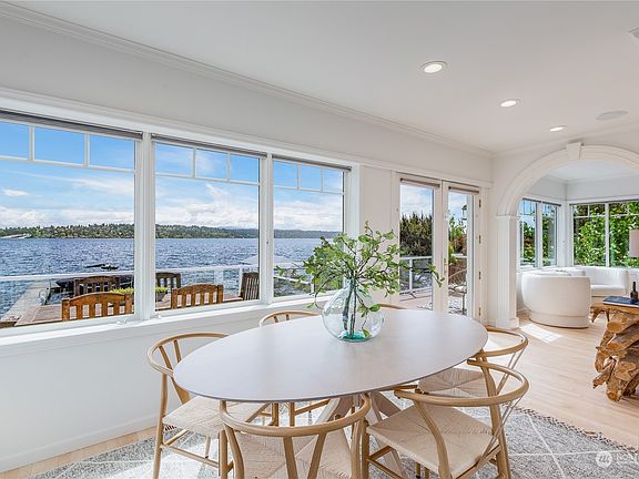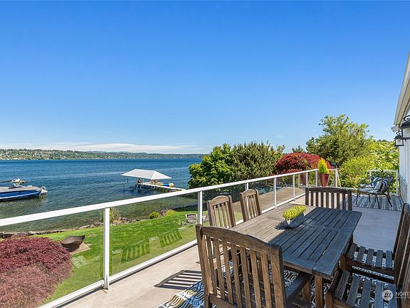 Dreaming of life on the lake? 60+/- feet of low-bank waterfront invite you to settle in & enjoy; sunrises year-round & watersports all summer. Invite your friends & live the good life; water lapping the shore & birds in the trees. The connection to the Cascades & Mt. Rainier is strong; a daily reminder of life outside. The water calls: a private dock with boat & jet ski lifts; perched on the lake's calmest waters (surf before work, anyone?!). Home offers flexibility; a 2,998sf main home + 472sf DADU/apartment above a detached 2-car garage, perfect for hosting guests, multi-generational living or income. The main home is so connected to water; bright living spaces & an amazing deck. Plenty of garden space + lakeside lawn for people & pets.
