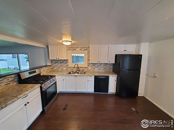 Cute Cute Cute remodeled home in quiet park in Fort Collins near Old Town. New fixtures, new flooring, new paint, kitchen updated as well as bathroom with double sinks! You must see this home. Lot has nice fully fenced yard. 2 dogs ok (40 lbs or less please). Lot rent only $875.00 and a great location whether a working person/retiree or student. See this home before it's gone!