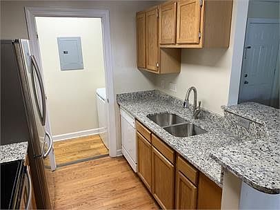 A great open floor plan makes for a versatile space in this 2nd floor unit. Balcony allows you a space for outdoor enjoyment. Laundry room is located off the kitchen and has plenty of space to double as a pantry. Washer & Dryer included. Cold water is included in the rent (saves $30-$50 a month). *Unit also includes a storage unit located in the covered parking area. Water included in rent. Tenant pays electric and natural gas.