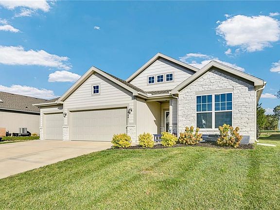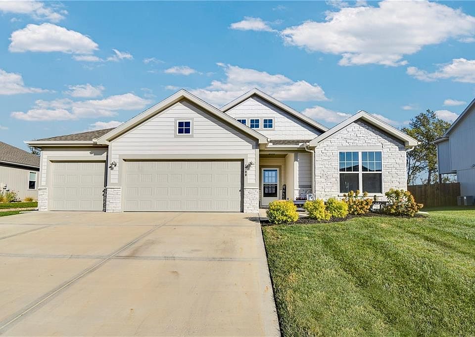 Nearly “New” built home, ready for you. Welcome to Aster, a beautiful ranch-style home by Authentic Homes KC! This thoughtfully designed home is packed with luxurious upgrades and stylish touches throughout. Gorgeous & upgraded flooring offers both elegance and durability. This open-concept layout features a chef-inspired kitchen with quartz countertops, stainless steel appliances including a gas stove, custom cabinetry, a walk-in pantry, ample counter space, and a large center island that flows seamlessly into the spacious living room—perfect for entertaining.