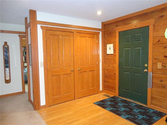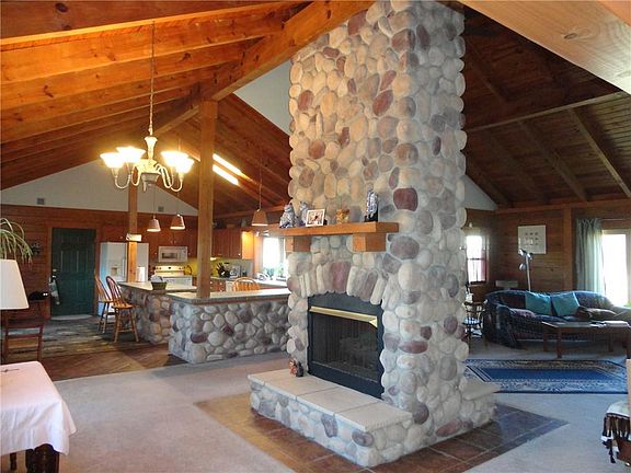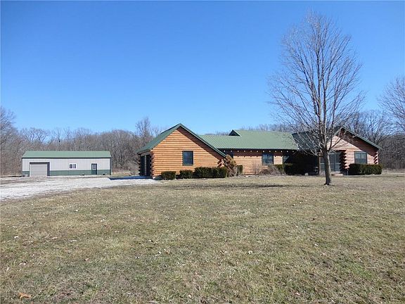 Custom 3 bedroom, 2 bath log home situated on 5 acres bordering Army Corp property! Open concept living room, dining room and kitchen with cathedral wood ceilings. Double sided floor to ceiling stone gas fireplace sits between the living and dining rooms. Spacious master suite includes jetted whirlpool tub, shower room, walk-in closet and laundry. Partial unfinished basement. 2 car attached garage plus 30 x 48 Graber outbuilding with concrete floor and is set up for woodworking/workshop. Additional 20 x 40 outbuilding. Newer windows (excluding the kitchen sink window), newer garage doors and openers 2012, house stained 2018 and new hot water heater. Beautiful country location with Lone Point Lake access at the end of the road!