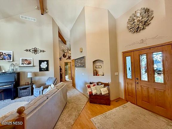 Vaulted beamed ceilingLarge pantryBeautiful cabinetryExcellent storageSpacious islandMain floor laundry roomLarge bedrooms