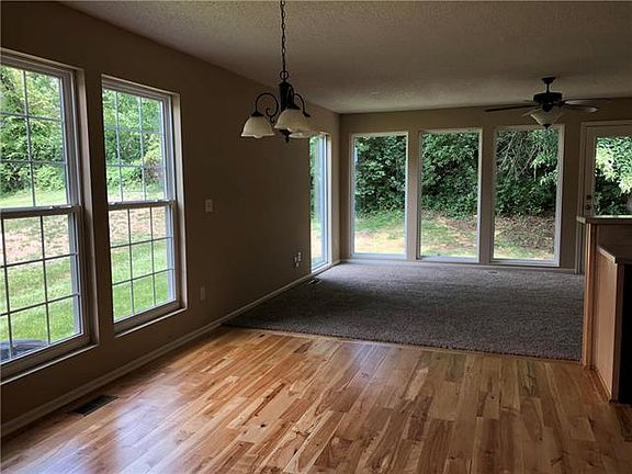 Great Location. Open 2 story plan with switchback staircase to bedroom level. Great Room with Fireplace, walk out to patio and enjoy the trees and green space. Wood floors in the kitchen and dining area. All appliances stay. Master Bedroom suite includes bath and large walk in closet. Laundry on the bedroom level. New Carpet. Fresh Paint. MOVE IN READY. No worries here - lawn care and snow removal included in monthly HOA. This is an end unit.