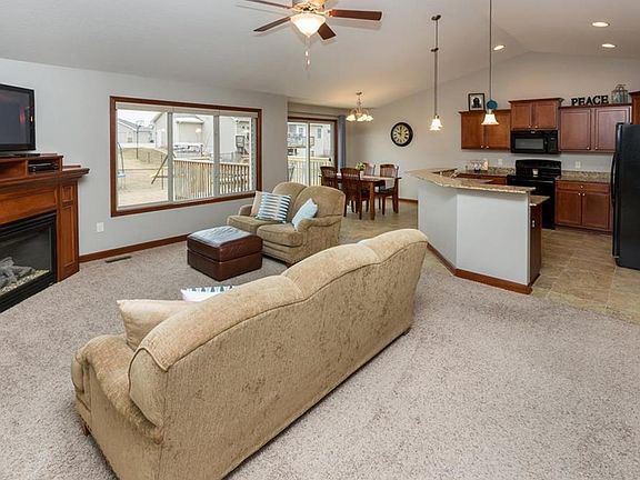 Don't miss this spacious ranch home on corner lot! 3 bedrooms with 2 full baths. Large great room showcasing kitchen and eating area! Gas fireplace. Kitchen hosts granite counters and tile. Eating area has slider to nice size wood deck. First floor laundry. Easy walk from garage to kitchen. Huge master suite with private bath and walk in closet. Even has central vac, Bedrooms are all in the same wing of the home. Large basement is ready to finish, with 2 additional bedrooms possible, egress windows, 3 car attached garage. Dallas Center-Grimes schools.