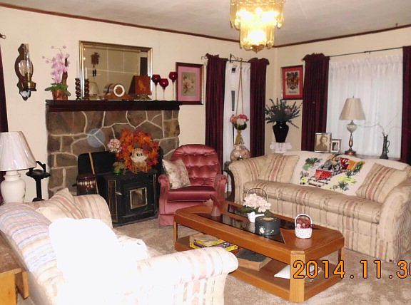 Neat home with a metal roof that was installed about 3-4 yrs. ago. Newer tilt window. Stove, Ref., DW, washer and dryer convey. Part of KT is laminate flooring. Big deck. 2-Car det. carport with good parking. Beautiful KT cabinets. LR has a fireplace and they use pellets in the insert. This home was originally a log home then stucco.