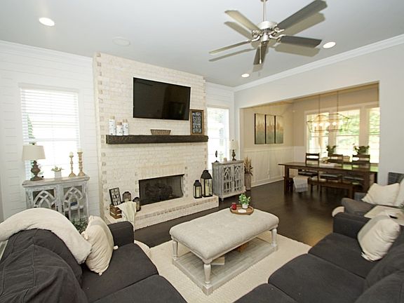 Prepare to be captivated by this stunning former model home, with custom details at every turn. Upon entering, you’ll be greeted by a lovely barn door and a brick archway. Inside, you’ll find the timeless charm of shiplap walls, complemented by surround sound. You'll love the gorgeous hardwood floors. The kitchen features elegant white cabinets, a generously-sized island, and luxurious countertops. With five bedrooms and four full baths, this home provides space for all your needs. The primary bedroom, situated on the main level, is complete with an ensuite bathroom and his and her walk-in closets. Another bedroom on the main floor is accompanied by a full bath. The remaining three bedrooms and two full baths are located upstairs, with one of the upstairs bedrooms featuring its own ensuite. Storage is abundant throughout the home. An outdoor living area is enclosed by an elegant wrought-iron fence. Get ready to completely fall in love with everything this home has to offer!