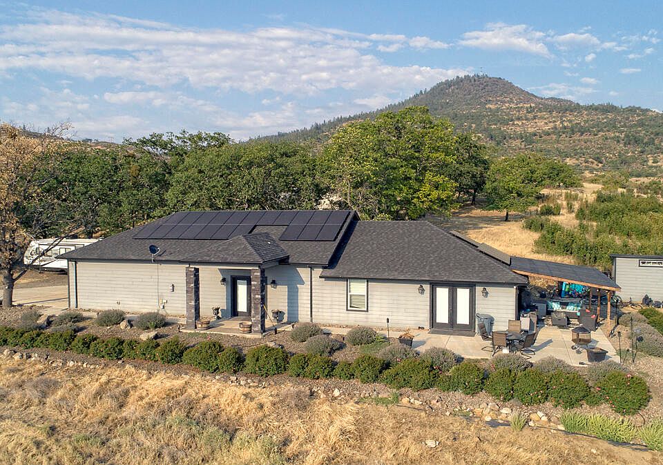 Welcome to your dream home! This stunning property, built in 2018, sits on just under 3 acres of flat, usable land and boasts breathtaking views that will take your breath away. The house comes with modern amenities, including solar panels, ensuring energy efficiency and cost savings. Enjoy the beauty of nature from the comfort of your patio, where you can relax and unwind while soaking in the picturesque surroundings. The spacious 2-car garage provides ample storage space and convenience. Inside, you'll find a cozy yet well-designed layout, featuring 2 bedrooms and 1 bathroom. The large dining area, with its double doors, creates an inviting and open atmosphere, perfect for hosting gatherings and entertaining friends and family. Whether you're a nature lover seeking tranquility or someone who appreciates modern living in a serene setting, this house offers the best of both worlds. Don't miss the opportunity to make this beautiful property your forever home!