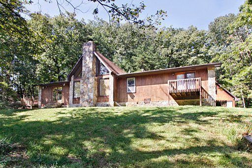 Majestically nestled in the trees, this stone and cedar hm sits on 1.66 private acres*High quality remodel features a span of hdwd and tile flrs, granite c-tops in KIT and baths w/custom tile work, 18 ft pine cathedral ceilings w/exposed beams, flr to ceiling stone FP, new cabinets and appliances and sprawling granite brkfst bar, decks, patios and private entertaining areas, level bkyd*3 BR, 2 BA rancher has the views, features and charm youre looking for* Open feeling w/large windows and vaulted ceilings*2 C-GAR w/500 SF bonus rm above perfect for studio or apt* Located 1.5 mi from 1-75, sh