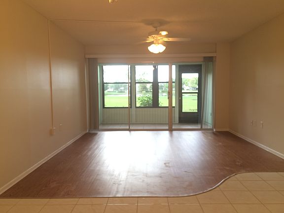 A 55+ community with plenty of activities and things to do. The community offers large golfing areas, multiple tennis courts, multiple swimming pools, barbecue areas, activity centers, and much more. Close to shopping centers, malls, and public transportation. Great quiet community in a perfect location. It has a beautiful view of the golf course, a lake, and a fountain! Feel the relaxation at first glance. Condo flooring is tile and Wood laminate. Has a large lanai and storage area. It is a definite "must see". Terms include a $75 application fee per adult. All applicants are required to have a background check administered. Credit score will be pulled and employment will be verified. Household income must be 3 times the monthly rent. No pets are allowed. No smoking allowed. Tenant is responsible for utilities. HOA approval required before allowed to move in. Owner will take care of HOA fees.