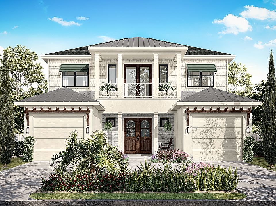 Once inside, you’ll admire the light toned, wood floors in the Foyer, Gallery, Kitchen, Great Room, and Laundry Room. The Kitchen will include a state of the art Viking Appliances package with 36” cabinet depth refrigerator, 30” gas range, 30” internal hood, QuietClean dishwasher, Microwave with Sensor Cooking, and a Uline Wine Cooler. The Kitchen will also include custom cabinets with 3cm Quartz countertops, a Butcher Block Island countertop, and a walk-in Pantry. In addition to the Kitchen, Great Room, and Dining Room, this luxury residence is conveniently designed with the Owner’s Suite and Bathroom, Den, and Full Guest Bathroom on the First Level. All windows and sliding glass doors are hurricane impact rated, insulated glass. The sliders in the Great Room and the Master Bedroom open to the private pool terrace and pool deck surrounded by lush landscaping. The second level provides a quiet area for the family or guests with three Bedrooms, two Full Bathrooms, and a 15’x22’ Bonus Room with balcony.