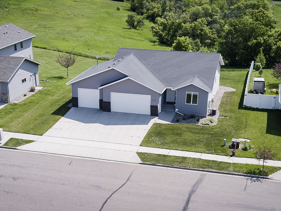 PRICE REDUCED on this Beautiful RANCH style home with a WALKOUT basement to the backyard with no backyard neighbors. Enter in the front door to the main floor which has an open floor plan with the kitchen that features an island with pull outs, pantry in the cabinets and stainless steel appliances. The dining area leads out onto the East facing deck overlooking the big back yard, Bedroom and full bath off the entry door. Living room includes a natural gas fireplace. The main floor laundry with cabinets. The big primary bedroom features a vaulted ceiling with recessed lighting, walk in closest and a 3/4 Bath. The seller had the lower level finished which has a family room with a wet bar that is wired above for a possible island bar which has a walk out door that leads out to the East facing large patio, 2 nice sized bedrooms with day light windows, another full bath, closet storage under the steps and the large utility room with lots of storage area. The Big 3 Stall garage has Hot and Cold water, floor drain and is plumbed for a heater. The seller had the yard landscaping done with a sprinkler system and rocked edging around the house. Home is near an Elementary School and a walking path. Go take a look.