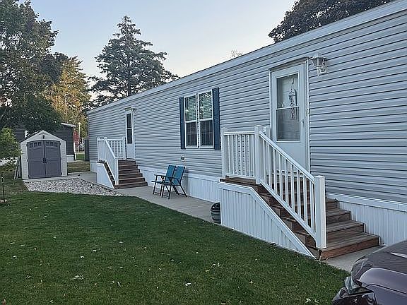 Are you looking for a new place to call home this spring? Then look no further. Located in a quiet community (The Village Green in GH) 1700 Robbins Rd., Lot 271 is a quick 10 minute drive from downtown Grand Haven and the beach. The four year old home is located in a clean and walkable community. One owner: smoke free and cat free. House has been well cared for. The home is a 2 bedroom, 2 bath, and approximately 1,000-1,100 square foot manufactured home. It was built in 2021 and MHE is the manufacturer. The primary bedroom has attached bathroom with a toilet closet, large vanity and a step in shower with glass doors (or curtain). The second bathroom is full size with a bathtub. Both bathrooms have over the toilet storage cabinet. The washer and dryer are in the hallway between the bedrooms with storage cupboards. The eat in kitchen has plenty of cupboard space, stainless steel appliances, as well as a pantry and a coat closet. Comes with a four year old gray storage shed. There are three parking spots in front of the home. All appliances are included. Lot rent: $540 Must be approved by The Village Green before being able to purchase. Please message, text, or call with with questions or to set up a time to walk through! If this listing is up, home is still available. Thank you!