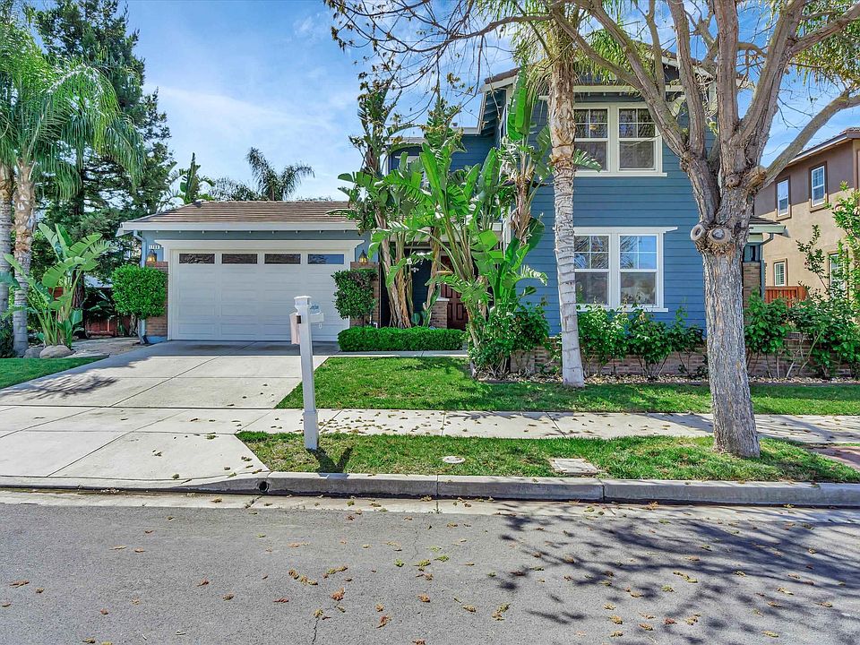 Welcome to a quality-built home! This Visions of Brentwood beauty features wood, upgraded carpet, & nice tile flooring. The craftsmanship is easily seen throughout with coffered ceilings, crown molding, a built-in entertainment center, a gas starter fireplace, recessed LED lights, and a kitchen that is chef ready providing double built-in ovens, built-in microwave, a dishwasher, a gas stovetop with custom range hood, custom pull-outs in cabinets, large island with breakfast seating & casual table area. Downstairs den/work-from-home space. Formal living & dining rooms & a full bed w/private bath downstairs. Most windows have shutters. Amazing indoor/outdoor spaces perfect for entertaining including an outdoor kitchen under the covered patio & courtyard patio w/fireplace Opportunity to build your own backyard oasis or future side yard parking. Upstairs offers a large loft for the kids, all secondary bedrooms are large & staged with queen beds. Spacious primary suite with generous ensuite including soaking tub, dual vanities, & walk-in closet with organizer. Owned Solar for reduced electricity bills, 3 car tandem garage. Room for everyone! Could work for multi-generational living, convenient location, great schools, shopping, freeway, etc. You don't want to miss this one!
