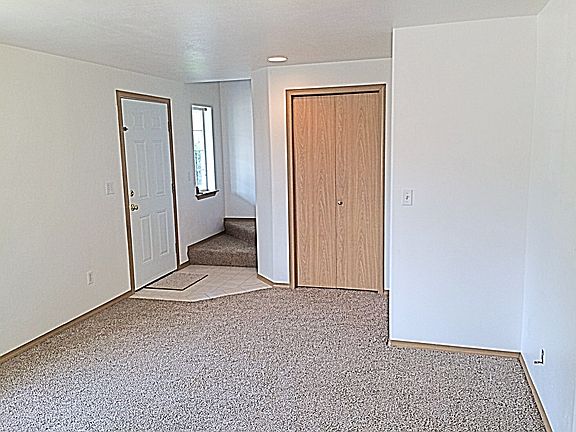 Adorable & updated 3 BR home - Move In Ready! New paint, carpet and laminate flooring throughout! All appliances stay. Natural flow from kitchen-dining-living areas make this 1200 sqft home feel much larger. Large deck off DR slider is perfect for backyard BBQ! Secluded lot on cul-de-sac, adjacent to city retention basin. Partially-fenced lot with plenty of space for entertaining and gardening. Natural gas, forced air furnace. Covered front porch. Freshly painted garage floor. 3 BR + BA upstairs. 1/2 BA downstairs. USDA Zero Down approved!