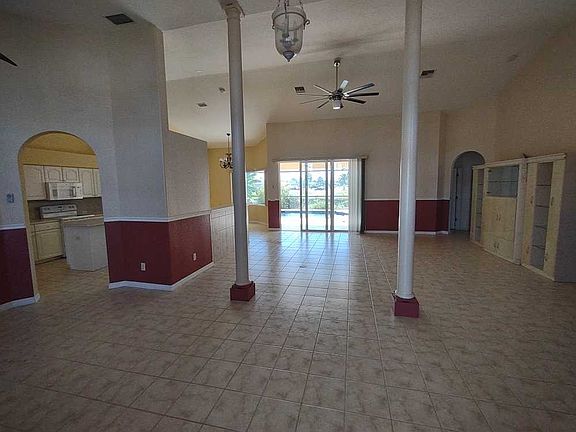 Located in the desirable SW area of Cape Coral off Chiquita Blvd. Great schools within walking distance, parks, shopping, and dining nearby. 4 bedroom, 2 bath with a two car garage available for annual lease. Large open floor plan 2253 sqft house on an oversized triple lot for a family with small pets. New kitchen cabinets and countertops.