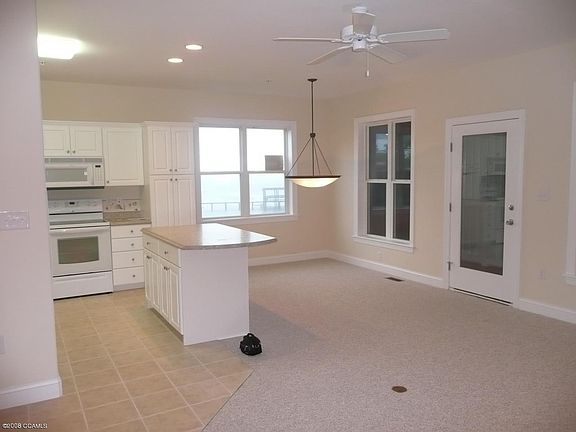 Direct sound front, first floor end unit with view of pool, marina and Bogue Sound sunsets! This unit has never been lived in and has upgraded countertops. There are 2 bedrooms, 2 full baths and a bonus room/den. Enjoy the open living area/kitchen/dining room/bar area. The balcony deck has a complete enclosed shutter system. Covered parking and elevator access.