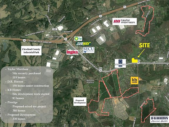 NCDOT traffic maps indicate 10500 cars per day as of 2021. This property has approximately 560 feet of road frontage on Shelby Road (Highway 74 Business). Location: approximately 0.7 miles from the Food Lion / Roses shopping center and approximately 1.2 miles west of the Walmart Market, McDonalds, CVS, Pizza Hut, and other restaurants and retailers. Within 2 miles to Ingles Markets and NC Hwy 74. +/-3 miles to I85 and Catawba Two Kings Casino.