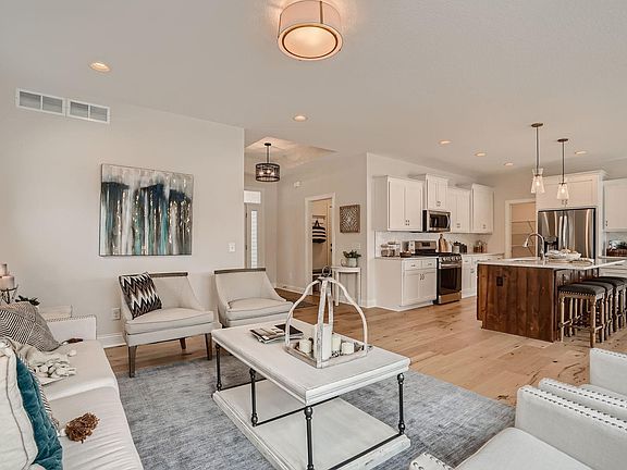 Distinctive Design Build is proud to present the "Langdon Rambler'' in Sapphire lake Farmington. This unique, modern one level floor plan is complete with quartz countertops and tile backsplash. Walk-in pantry, stainless steel kitchen appliances and custom cabinets with soft close. Main level laundry. Primary suite features ensuite with walk-in closet, full tile shower and double sinks with quartz countertop. Quality craftsmanship and inspiring design with high-end finishes. Beautiful neighborhood with walking/biking paths through natural wetlands, parks and Sapphire Lake.