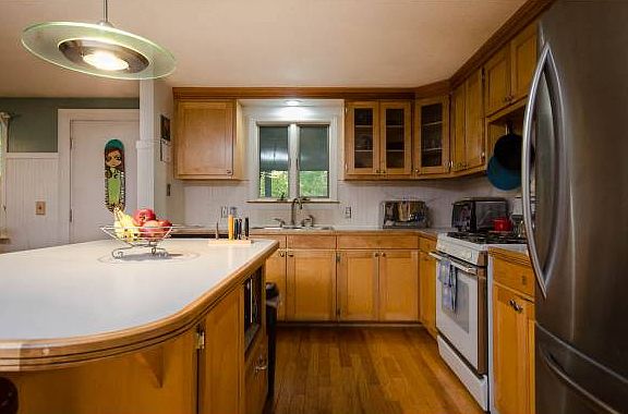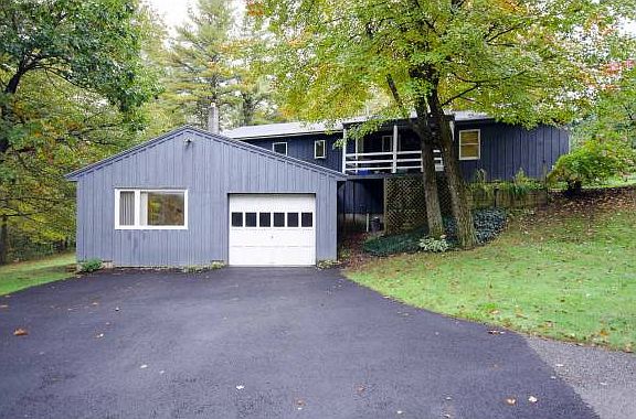 MAKE THIS UNIQUE TWO FAMILY CONVERSION YOUR NEW HOME! Enjoy the private wooded setting as this home sits back on 4.50 acres on land. The upper level unit includes 4 bedrooms, 2 baths, kitchen island, wood-stove, hardwood floors, and open floor plan perfect for entertaining guests. Lower level unit is a one bedroom with its own private entrance, painting/art studio, skylight and access to garage and basement. Attached one car garage, all separate utilities and open concept barn for extra storage. This 2 unit could be converted back into a Single Family Residence, as it offers a total of 5 bedrooms, 2.5 baths. Come take a look at this great find!