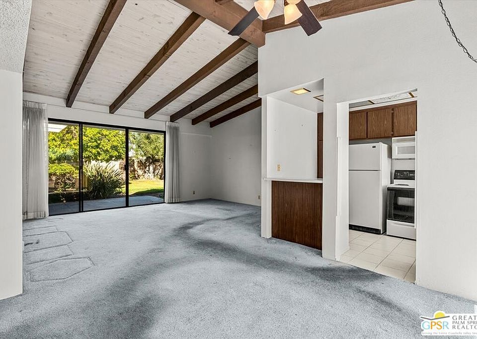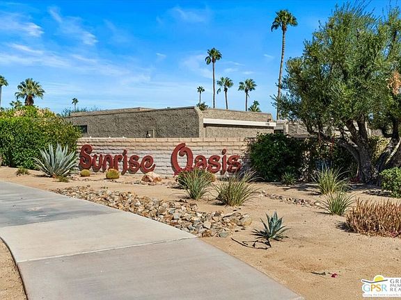 Classic Palm Springs living in a fantastic central location ready for you to make it your own! This single story, end unit condo in Sunrise Oasis has great bones for the buyer looking to personalize in their own style. With a primary ensuite and two guest bedrooms, this is an amazing opportunity to fashion your own weekend getaway or full-time residence. The unit features a fully enclosed front patio off the kitchen and rear patio leading out to fenced grassy area shared by four units. Recent upgrades to the unit include a new roof and new electrical panel and a newer water heater. All appliances including washer & dryer included. The condo comes with a 1-car garage and room for additional parking up to 3 vehicles. Located just a mile from Downtown Palm Springs, this community is on fee land (you own) near Ruth Hardy Park, Desert Regional Hospital and all of the shopping and dining options Palm Springs has to offer. HOA includes water, roof maintenance, landscaping, 3 pools/spas, 2 pickleball courts, exterior building insurance, and trash.