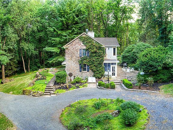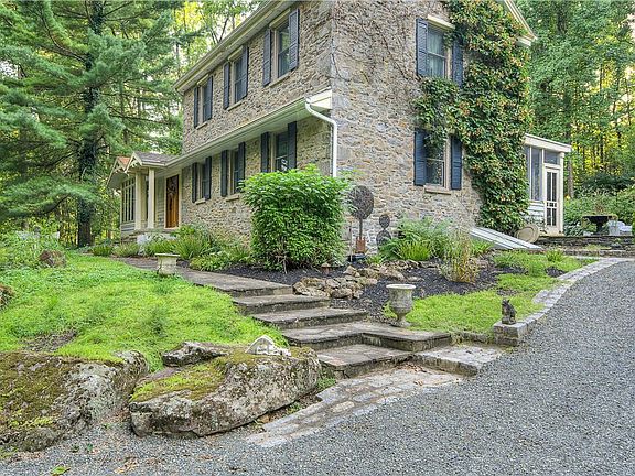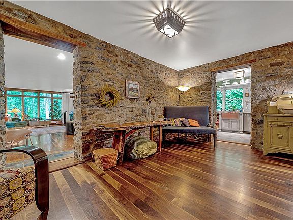 Welcome to this gorgeous 1800’s circa Home nestled on this quiet tranquil property of nearly 9 acres of land surrounded by woods, open yard and extensive landscape lined by stone masonry walls, cobblestone curbing, flagstone walkways, Local Artist Designer exterior lights, Custom Designed and builet Front Door and an extra-large flagstone patio to relax and enjoy the calming sounds of the wildlife and nature. Looking for that first floor main bedroom with a full bathroom, this is the place for you! A true Jem that has been completely restored boasting cherry and walnut floors throughout the home, walnut trim among the windows and doorways, Built in Cherry Custom Cabinets, the extensive pointed stone on the interior and exterior of the Home. The gourmet kitchen to prepare your food and entertain guests in the sitting room outside the kitchen or move the guests to a full dining room. As you tour the second floor of this home, you will find a vaulted ceiling bedroom with an abundance of windows that overlook this property, two story pointed stone wall and solid wood floors to accommodate this beautiful room. This home has been sought out with the details as you enter the main bathroom, you will feel like you just stepped into Italy with the design of the walk-in shower, exposed wooden beams, custom tile and sink. Deep windowsills add beauty to every detail of this home. Anderson and Pella Windows throughout. A newly built detached garage with concrete floor & covered roof.